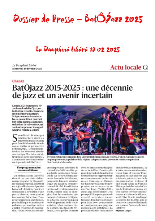 Pour ces 10 années d’existence menées contre vent et marées, une belle avant-scène offerte à notre public par BatÔJazz, à Chanaz, à quelques encâblures du Rhône, notre proche voisin…